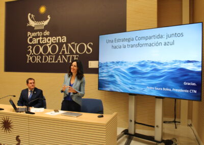 Cartagena, 29.octubre.2025.– El Centro Tecnológico Naval y del Mar (CTN) ha celebrado, esta mañana, el evento «Transformación Azul: De las ideas a la acción», marcando el inicio de su nueva etapa estratégica. El encuentro, que ha tenido lugar en el salón de actos de la Autoridad Portuaria de Cartagena y ha estado encabezado por la directora de CTN, Noelia Ortega, ha sido el escenario oficial para la presentación de la nueva Junta Directiva del centro, liderada por Pedro Saura Bolea, y la revelación del Plan Estratégico 2025-2028, que integrará la innovación tecnológica y la proyección internacional del sector marítimo y naval fomentando la colaboración público-privada entre Administración, tejido empresarial, universidades y los centros tecnológicos y de investigación.