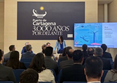 “La transformación hacia este modelo se articula en torno a dos ejes fundamentales como son la digitalización y la sostenibilidad”, ha dicho Ortega. Según la directora de CTN, «la hoja de ruta murciana y global exige un esfuerzo doble: reducir el impacto a través de iniciativas como el Green Shipping y la gestión de residuos, y revertir el impacto mediante la regeneración de ecosistemas y el desarrollo de nuevos modelos de negocio”. También ha añadido que “no hay que olvidar que la innovación tecnológica emerge como el principal acelerador de esta transformación, y el futuro pasa por una gestión masiva de datos a través de herramientas de vanguardia como el monitoreo en tiempo real, la inteligencia artificial para mejorar la precisión de los modelos predictivos y las simulaciones oceánicas a gran escala, y la planificación avanzada con el desarrollo de gemelos digitales y plataformas de visualización 3D que permitirán una gestión y ordenación del espacio marino más eficiente y colaborativa.